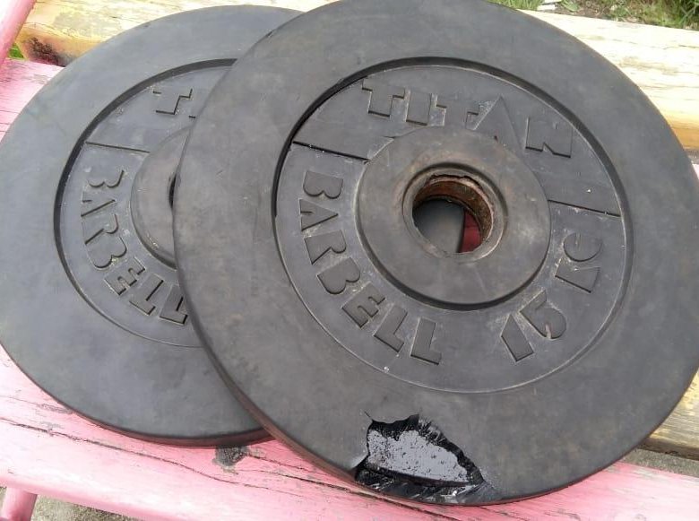 Иногда в качестве дисков для штанги используют автомобильные покрышки. В среднем авторезина весит около десяти килограмм, но если этого недостаточно, то можно утяжелить каждую покрышку, вложив внутрь железные детали и таким образом довести вес блинов до 30 кг.