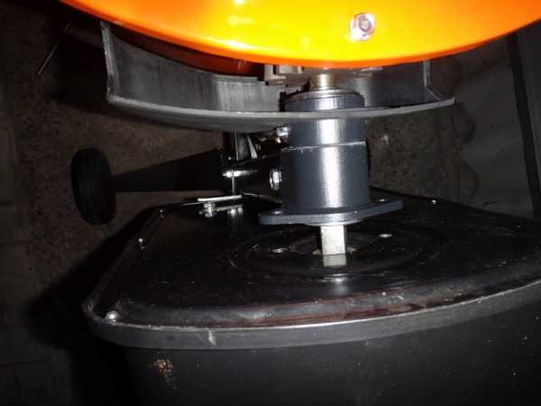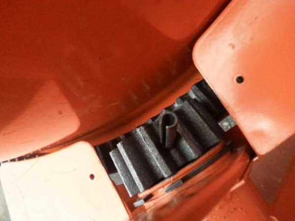Самое последнее, что необходимо сделать – это прикрутить защитный кожух над шестерней с нижней стороны колыбели. Для этого переворачиваем верх дном грушу и крепим его с помощью двух винтов.