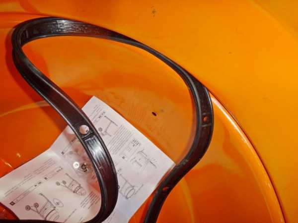 В резиновой прокладке отвестия разного размера. Крупные помещаются напротив уже вкрученных болтов.