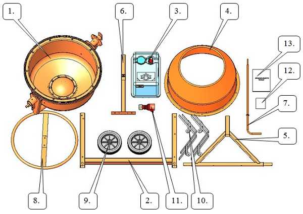 Для того чтобы выполнить самостоятельную сборку бетономешалки, потребуются: