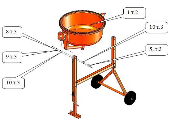 Сборка бетономешалки осуществляется в следующей последовательности: