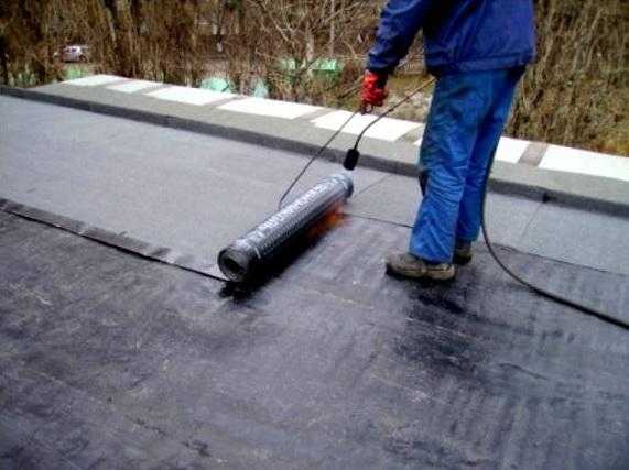 Если кровля делается плоской, односкатной, то применяют несколько слоев рубероида, наклеиваемых на битумную основу с перехлестом стыков 150 мм.