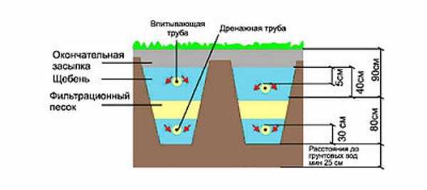 К емкости обязательно подводятся фильтрационные сооружения, очищающие воду перед ее попаданием из емкости в грунт. Существует несколько вариантов: