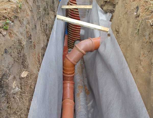 - Из накопительного колодца вода может отводиться куда угодно: в технический бассейн, в природный водоём, в централизованную канализацию. Дно траншей, в которых уложены дрены, отсыпается сначала щебнем, а потом песком. Затем делают ложе для труб: застилают геотекстиль, а потом насыпают ещё один слой мытого гравия — на него и укладывают трубы.