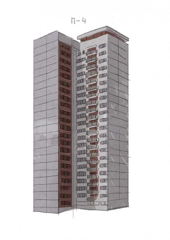 Серия П-4 – это красивые одноподъездные 16-22-этажные башни белого и светло-голубого цвета, которые, к сожалению москвичей, встречаются нечасто. Недостатки тут, конечно, имеются: от П-3 эта серия отличается не в лучшую сторону тонкими внутриквартирными перегородками, что ухудшает звукоизоляцию. Зато квартиры имеют удачные планировки, но для перепланировки из-за особенностей перегородок считаются не слишком подходящими.