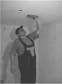 Потолок и стены подлежат шлифовке как после стартовой, так и по окончанию финишной шпаклевки. Наиболее проблематичной принято считать именно шлифовку потолка, также как и чистка потолка от побелки поскольку густая пыль, образующаяся в процессе, летит непосредственно на шлифовальщика, оседая на его голову и попадая в глаза и дыхательные пути при отсутствии должной защиты.