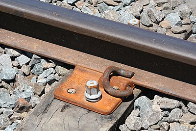 Рельсовые плети, уложенные внутри рельсовой колеи, должны быть с обоих концов пришиты к шпале двумя костылями и закреплены с торцов клиновыми противоугонами.