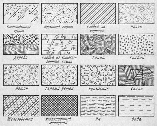 Чертеж 1а. Общее графическое обозначение материалов в сечениях.