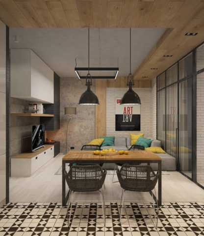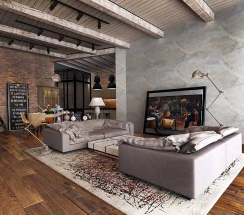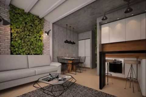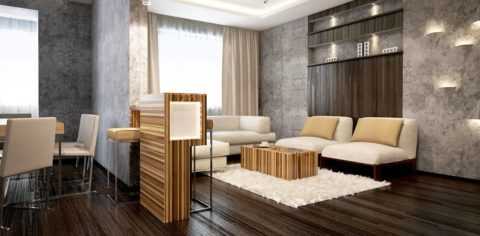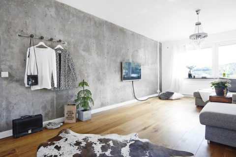 Имея грубоватый внешний вид, штукатурка под бетон в интерьере хорошо смотрится, является стильным элементом. В рамках современных тенденций декоративного оформления многие отдают предпочтение голым стенам и дизайну помещений, выполненному в минималистском стиле.