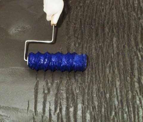 - Выполните нанесение фактурного слоя. Для придания рельефности используйте полиуретановые валики или фигурные штампы.