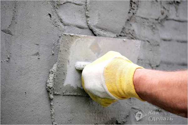 - прикрываются швы бетонных блоков или следов от опалубки.