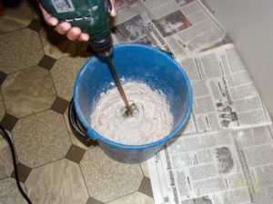 - Высыпать в емкость оставшуюся часть извести и перемешать строительным миксером.