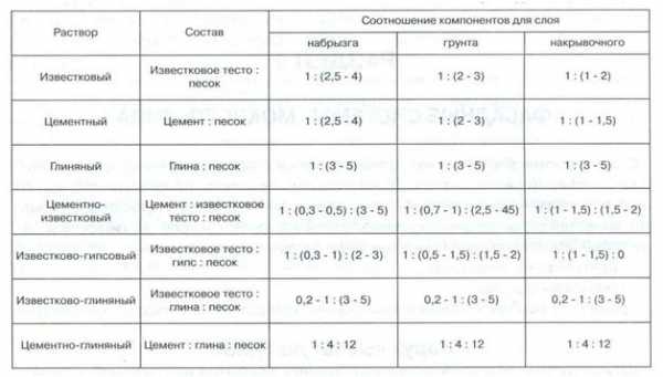 В зависимости от составляющих штукатурки делятся на цементно-песчаные, цементно-известковые и пр.