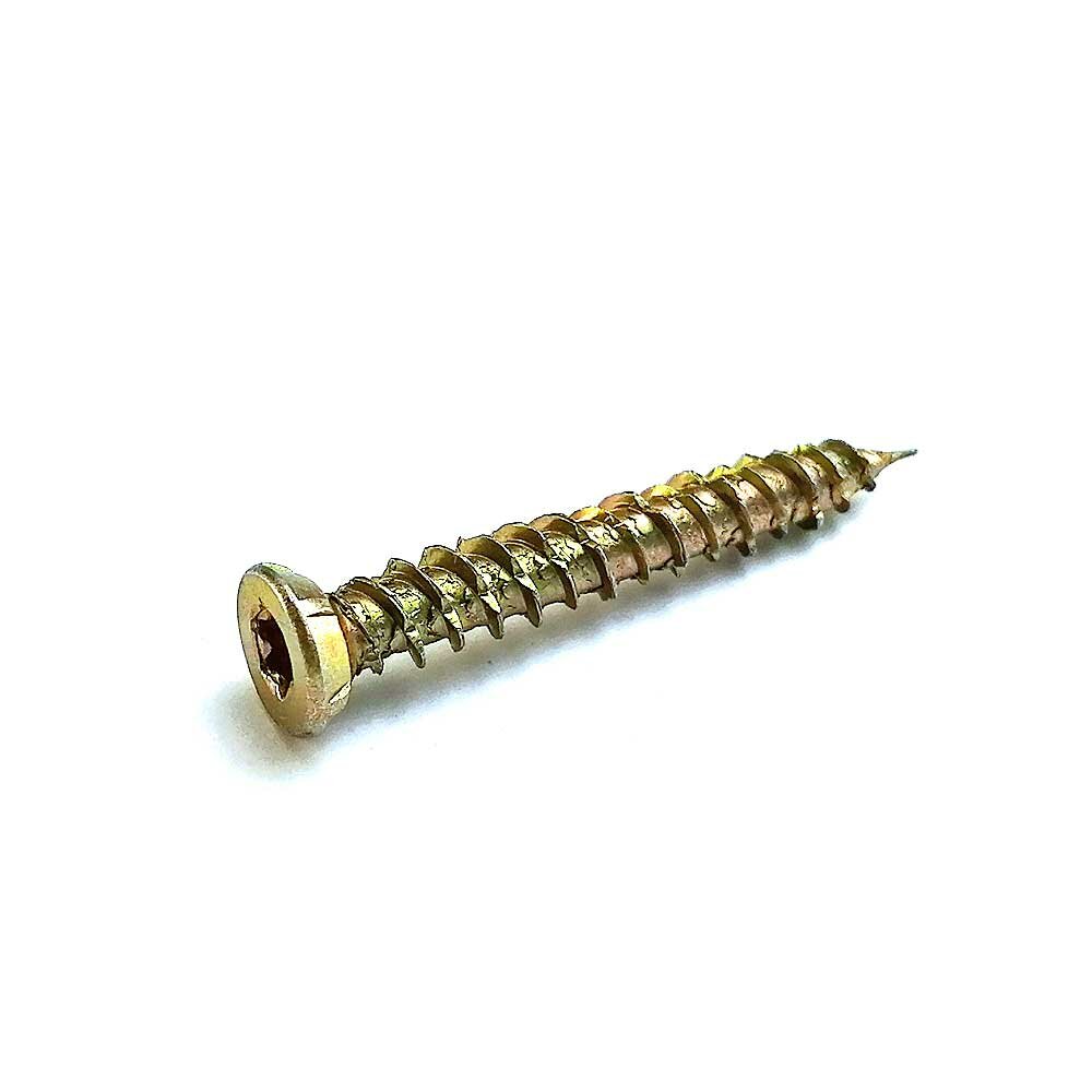 Данный шуруп в такие сорта древесины, как ель, сосна, кедр вворачивается легко без предварительного сверления. В дуб, ясень, клен и другие твердые сорта древесины предварительно сверлят отверстие, диаметр которого указывает производитель. Диаметр сверления приблизительно на 1,5 — 2 мм меньше диаметра самого шурупа.