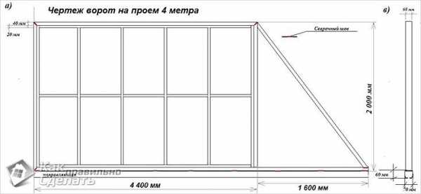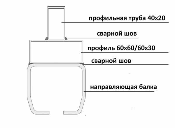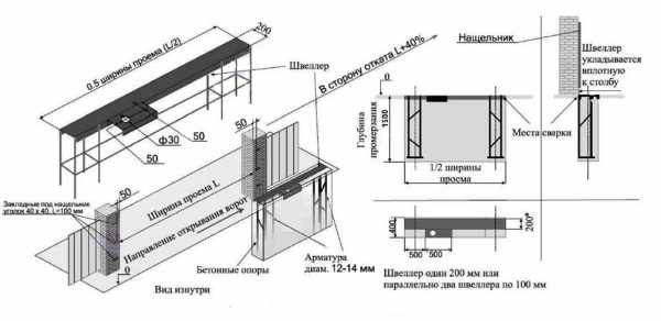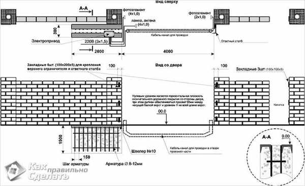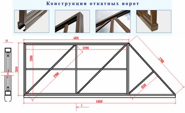 На схемах можно найти немало конструктивных деталей по изготовлению откатных ворот: