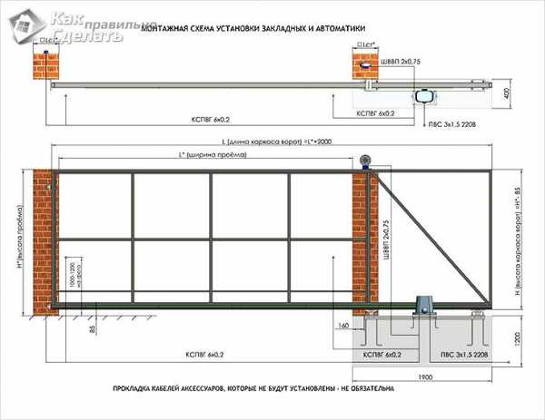 Внимание! В случае, если Вы захотите предусмотреть установку автоматики для откатных ворот, то под проезжей частью вам будет необходимо проложить кабель силовые и сигнальные кабеля