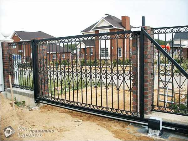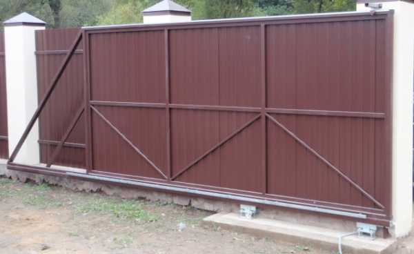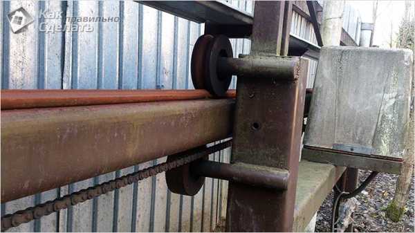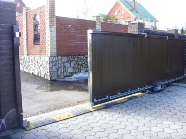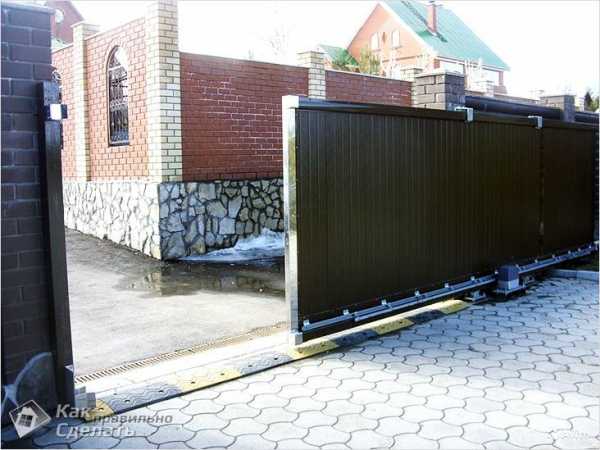 Их движение происходит либо по вмонтированному в грунт рельсу за счет колесиков, прикрепленных к нижнему краю ворот.