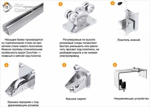 - верхний улавливатель «принимает» полотно ворот, не давая ему перекоситься при закрытии