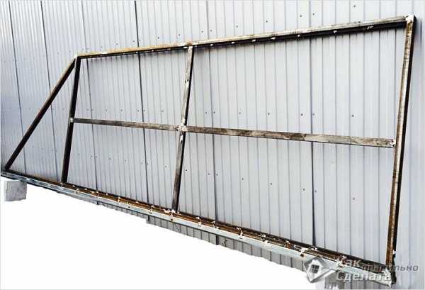 Не забудьте замазать получившиеся зазоры между основной рамой и внутренним каркасом силиконовым герметиком. Обеспечьте нормальную гидроизоляцию Вашей конструкции, не забыв о сварочных швах. В последнюю очередь, выполните грунтовку и покраску полотна откатных ворот.