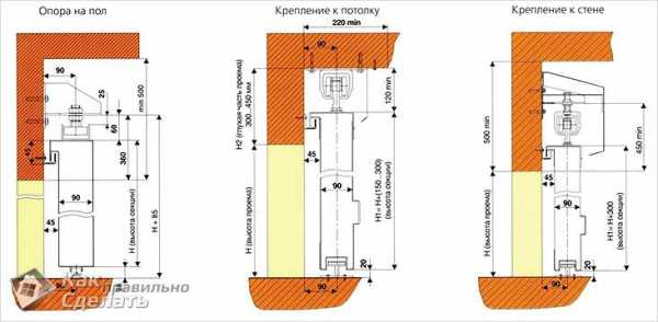 Вариант с рельсом является наиболее простым, но мало приспособленным к условиям российской зимы с ее обильными снегопадами и оттепелью. А вот консольный тип весьма распространен. Особенно с нижним и средним прилеганием несущей балки, поскольку над проемом нет перекладины, ограничивающей въезд массивного транспорта.