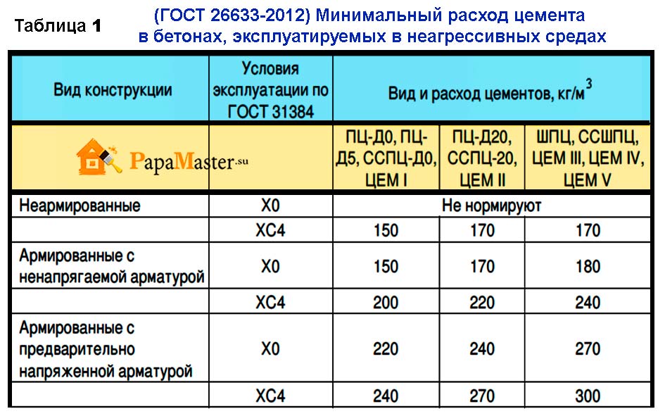 Таблица базовых норм расхода цемента при изготовлении тяжелого бетона