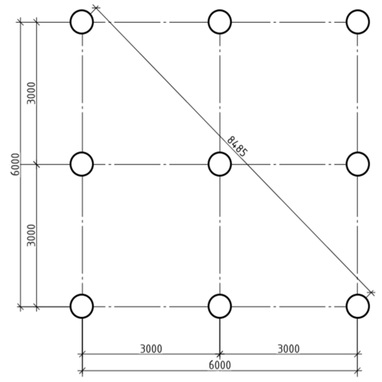 Далее, приведем расчёты, чтобы узнать сколько надо винтовых свай на дом 6х6. Допустим, вы возводите постройку из сип-панелей. Расстояние между сваями 3 метра. Общее количество 9 штук (8 по периметру, одна в центре). Второй вариант – дом из легких камней. Тогда потребуется установка свай на расстоянии 2 метра. Общее количество 16 штук (12 по периметру 4 в центре).