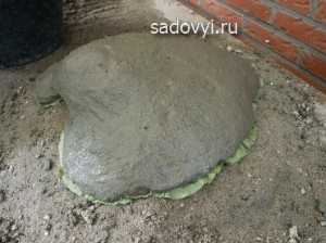 - Поверхность садовой скульптуры выравнивается при помощи раствора.