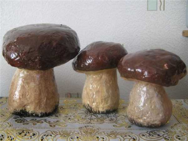 - После того как шляпка и ножка высохнут, необходимо приклеить их друг к другу — и фигурка гриба готова.