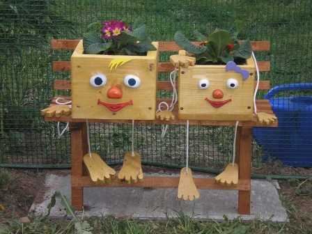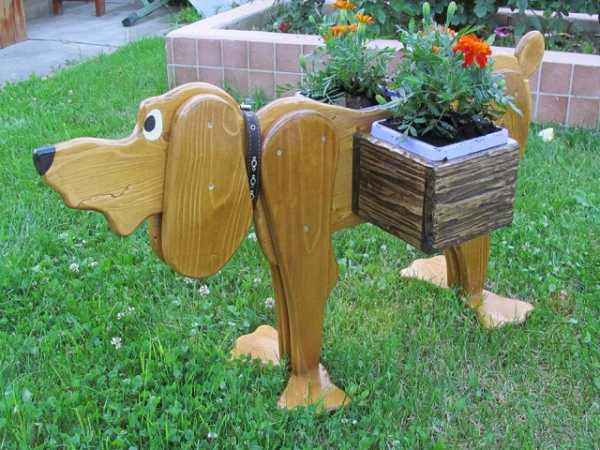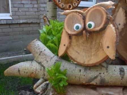 - Отлично смотрятся деревянные фигурки, которые можно сделать из пней, различных дощечек, старой деревянной мебели, бочек и прочих деревянных элементов.