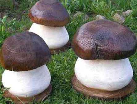 Можно также сделать симпатичные грибочки из дерева.