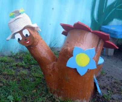 Мы не рекомендуем делать садовые поделки из пластиковой тары. Многих садоводов привлекает простота производства интересных фигурок из пластиковых бутылок, и они штампуют их десятками. Но мы просим вас обратить внимание на недолговечность этого материала. Уже совсем скоро солнце, дождь и ветер сделают свое дело, и ваша скульптура лишится всяческой привлекательности, становясь похожей на ненужный хлам.