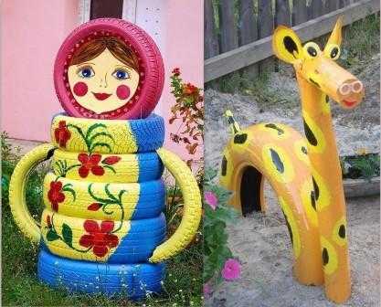 Часто для производства фигур используют и автомобильные покрышки.