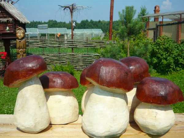 Садовые фигурки из гипса в виде грибочков (на фото) можно разместить где угодно, они органично впишутся во многие стили ландшафтного дизайна.
