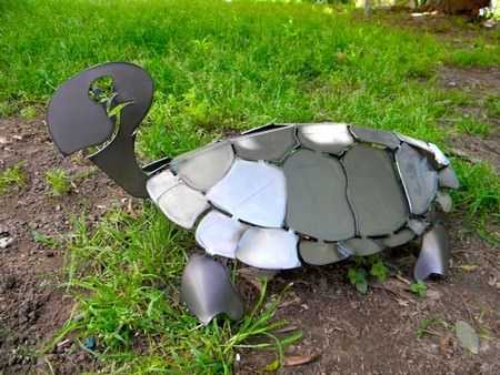 Скульптуры можно изготовить не только из бетона, гипса, бумаги и монтажной пены. Для такого производства подойдет любой подручный материал, которого всегда много на участке.