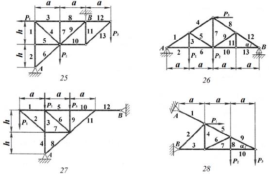 Если в симметричной ферме при симметричном загружении требуется определить усилия во всех стержнях, то следует определить усилия любыми методами в одной