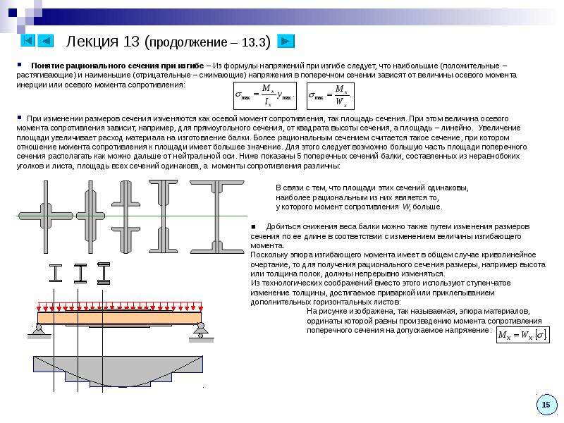 - Гипотеза Бернулли о плоских сечениях — поперечные сечения, плоские и нормальные к оси стержня до приложения к нему нагрузки, остаются плоскими и нормальными к его оси после деформации.