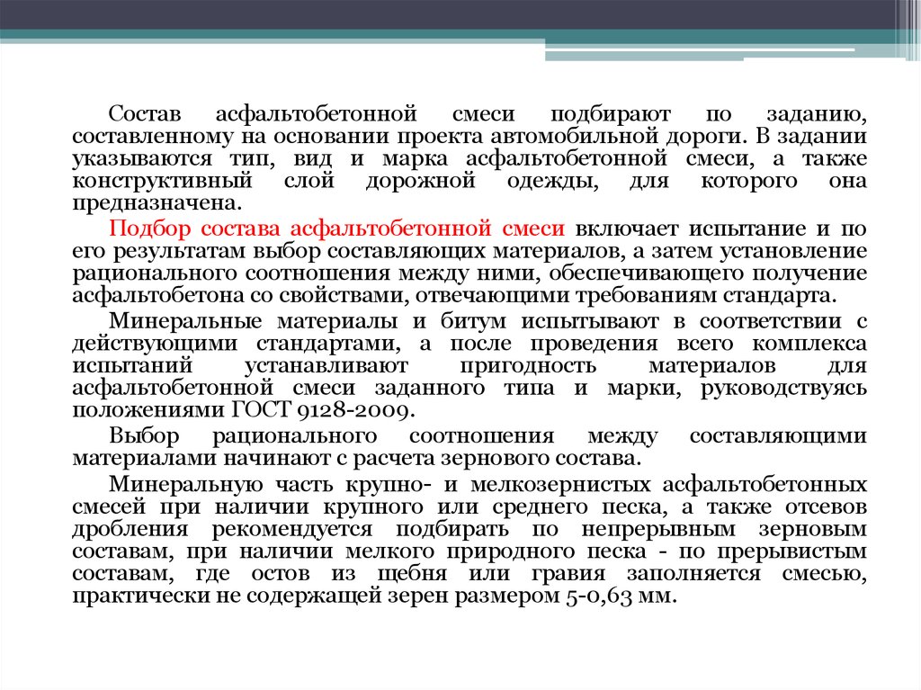 Асфальтобетонная смесь должна быть спроектирована, изготовлена и уложена таким образом, чтобы получить следующие желаемые свойства смеси: