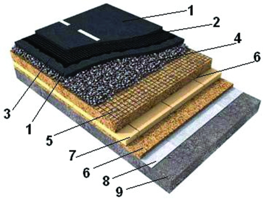 Если экономия не является проблемой, вяжущий слой и поверхностный слой могут быть выполнены монотонно с использованием материалов хорошего качества толщиной от 100 до 150 мм. Функция вяжущего слоя заключается в передаче нагрузок от поверхностного слоя на базовый слой.