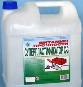 Суперпластификатор С-3. Один из часто используемых недорогих пластификаторов. В состав вводится нафталин-формальдегид сульфат. Улучшает срок службы бетонных конструкций, в том числе цементных штукатурок. При введении в песчано-цементный раствор снижает его расслоение, увеличивает текучесть и подвижность. Низкий расход. На 100 кг цемента требуется 5-7 кг.