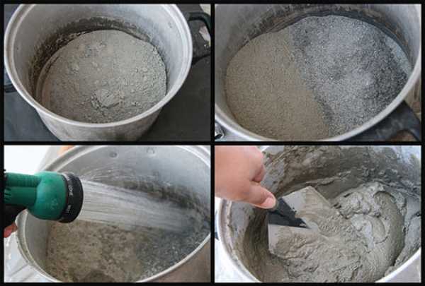 При применении извести-пушонки все компоненты перемешиваются в сухом виде, а потом заливаются водой.