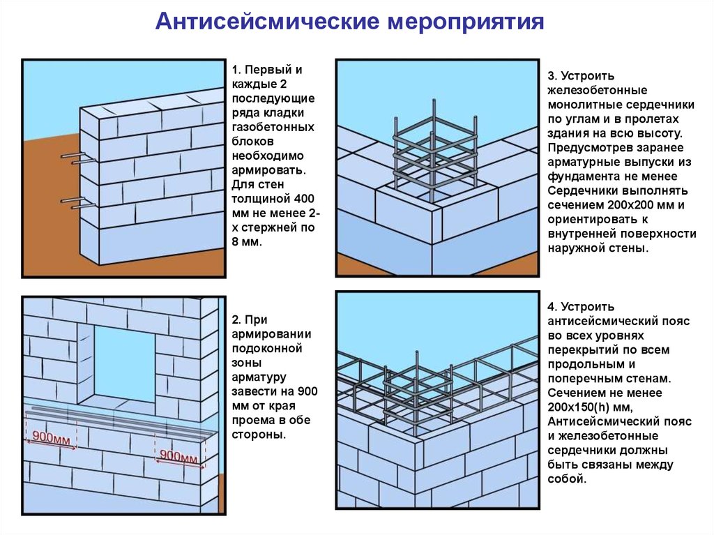 6.1.7 Несущие стены из конструкционно-теплоизоляционных автоклавных ячеистобетонных блоков рекомендуется возводить высотой до 5 этажей (до 20 м) включительно (не считая цокольного и мансардного этажей), самонесущие стены зданий — высотой до 9 этажей (до 30 м) включительно. При расчетном обосновании допускается увеличение высоты и этажности.