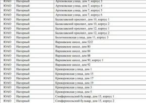 Западный Административный округ (ЗАО), список домов