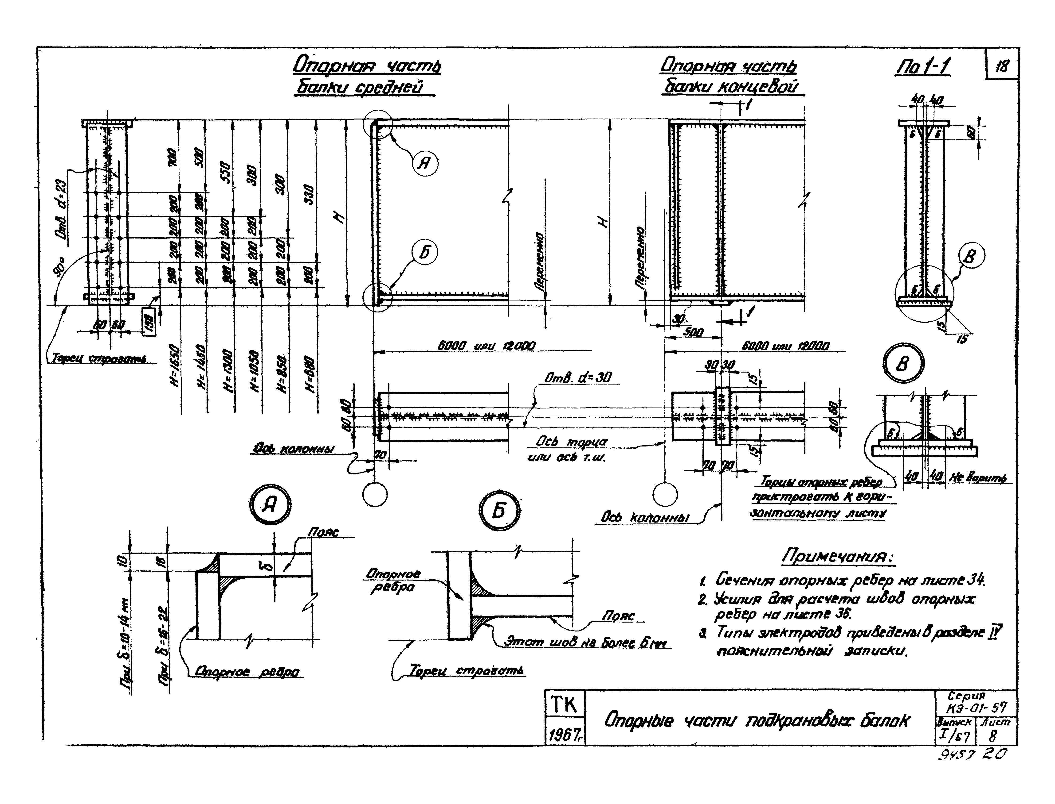 Стальные разрезные подкрановые балки пролетами 6 и 12 метров под мостовые электрические краны грузоподъемностью 5-75 тонн. Чертежи КМВыпуск I/67. Стальные резные подкрановые балки пролетами 6 и 12 метров под мостовые электрические краны грузоподъемностью 5 — 75 тонн. Чертежи КМ