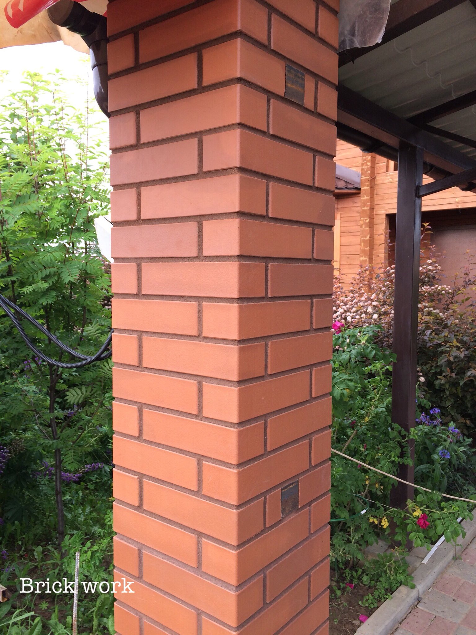 Главный компонент — глина. Она дает классический красный цвет. Материал прессуют, после чего обжигают. Это отличное сырье для кладки столбов из кирпича. Он прочный, долговечный и влагоустойчивый.
