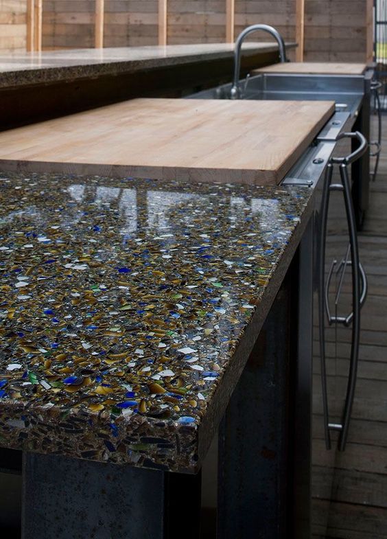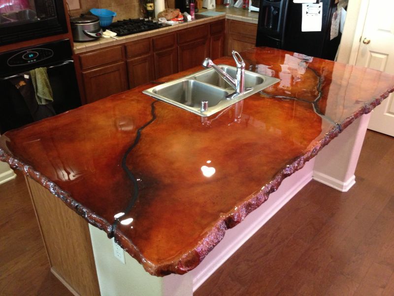 Методов декорирования столешницы из бетона существует множество. Тут все зависит от доступности нужных материалов, фантазии мастера и особенностей интерьера окружающего пространства.