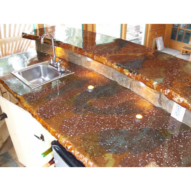 Вы сразу же увидите, как бетон начнет разжижаться и становиться жидким. Для наших столешниц мы использовали 1 1/2 пакета Flow Control на каждый мешок весом 55 фунтов.