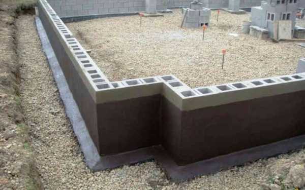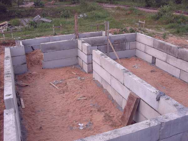 Если окажется, что грунтовые воды не поднимаются выше основания фундамента, тогда его стены можно строить из блоков, кирпича или другой кладки.