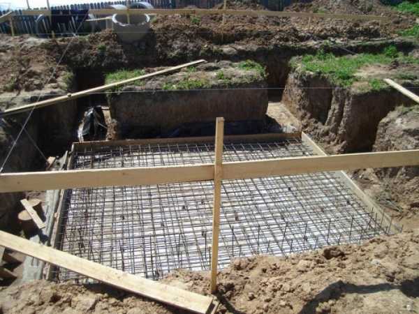 Когда стяжка застынет, на неё укладывают дополнительный слой изоляции. Только теперь можно начинать заливку плиты фундамента под дом с подвалом. Этот этап включает в себя несколько частей: