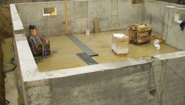 При заливке основания надо постараться провести работы за один день. Увеличение срока может привести к потере прочности. Следует не забыть про гидроизоляцию подвального помещения.