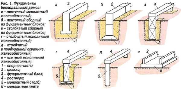 Для строений данного типа наиболее часто используются следующие виды оснований .